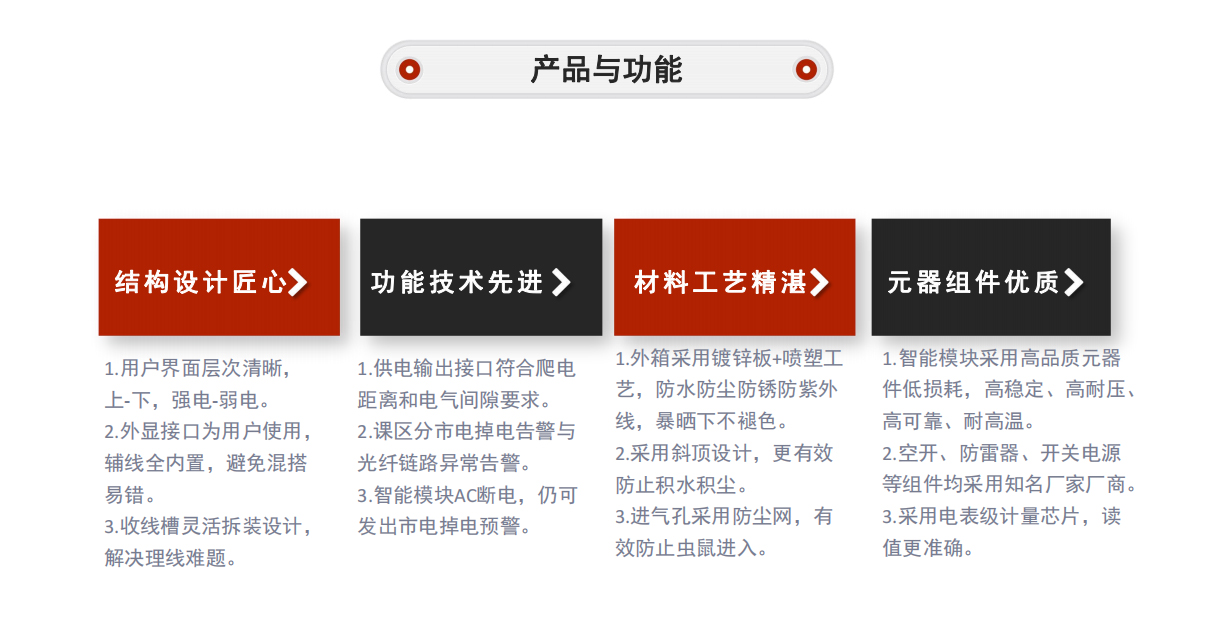智能設(shè)備箱采用“翻蓋式模塊化”的創(chuàng)新性結(jié)構(gòu)設(shè)計(jì),將強(qiáng)電弱電分離,各項(xiàng)功能模塊分類安裝,設(shè)備安裝時(shí),只需要把外接設(shè)備的線纜,插入接口即可。